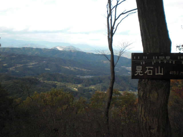 山道には樫の実が沢山落ちていた、落ち葉をカサカサ踏みながら緩やかなアップダウンの道を行くと晃石山到着だ。