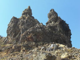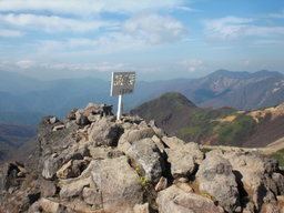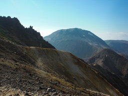 朝日岳の登山道は大小の瓦礫でとても歩きにくいけど、この雄大な自然のパノラマがそれを忘れさせてしまう、そして一歩一歩下界に下りながらも、今来た道を振り返り振り返り眺めては、自分もこれまでに嶮しい人生を幾度か乗り越えてきた事と重ね合わさって今来た道をしみじみと眺めた。