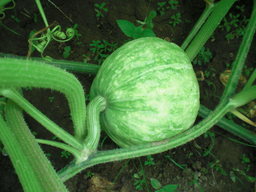 春に南瓜の種を蒔いて芽が出た、ところが霜にやられて全滅となり、再度種を蒔いた。