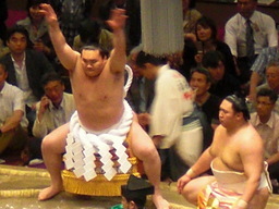 やはり人気は白鵬、杷瑠都、琴欧州、高見盛、魁皇、希勢里等々土俵に上がると一際に歓声がわきあがる。
