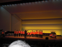 どこかで春が、早春賦、春の小川、めだかの学校、花、おぼろ月夜、みかんの花咲く丘、夏の思い出、蛙、その他数曲を合唱団の方と入場者全員で、指揮者の指導を受けながら皆大きな口をあけてお腹のそこから歌っていました。