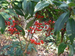 千両は枝の先端の所に実が付いていた。
