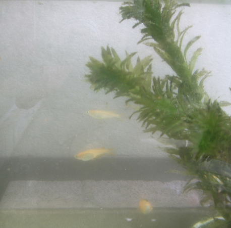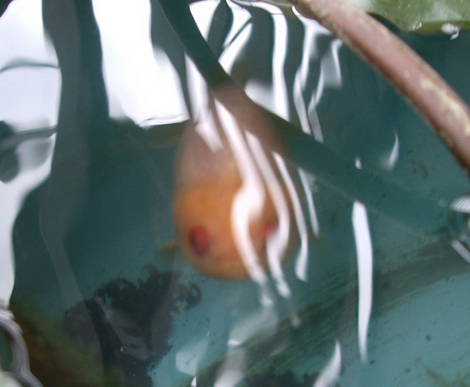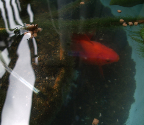 睡蓮の花咲く水槽に、金魚がスイスイ泳いでる♪ | ||