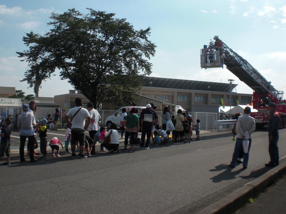 ちびっこ達には消防車による展望が大人気で長蛇の列だった