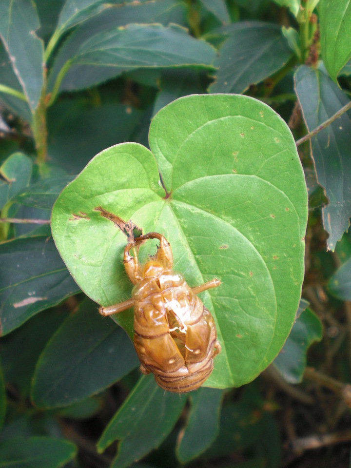 なぜか今年はわが家の庭の蝉の数が少ないようだ、いつもの年なら7月初めからジ〜ジ〜、ガンガン鳴くはずなのにどうも数が少ない、脱皮した抜け殻が沢山あるのになぜ・・・!?夏が寂しいよ〜