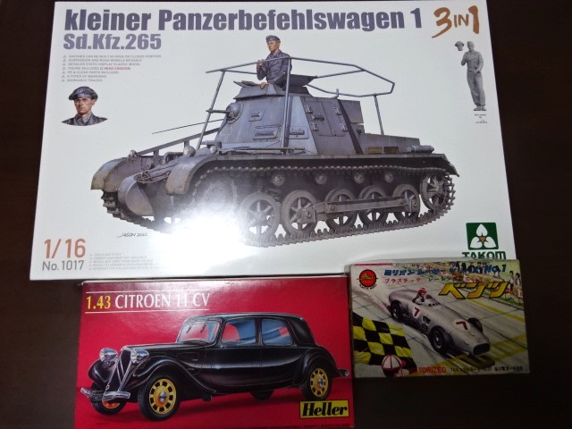 Bまずは1/16タコムの一号指揮戦車、これ以前から欲しかったキットでしたが、模型店で見掛けた事も無くて。アマ〇ンで数回見掛けたくらい。それが先週のツアーで発見したわけです。中古だし格安だしで。即買いしました。こういう「戦わない戦車」って、気になりますよねぇ。