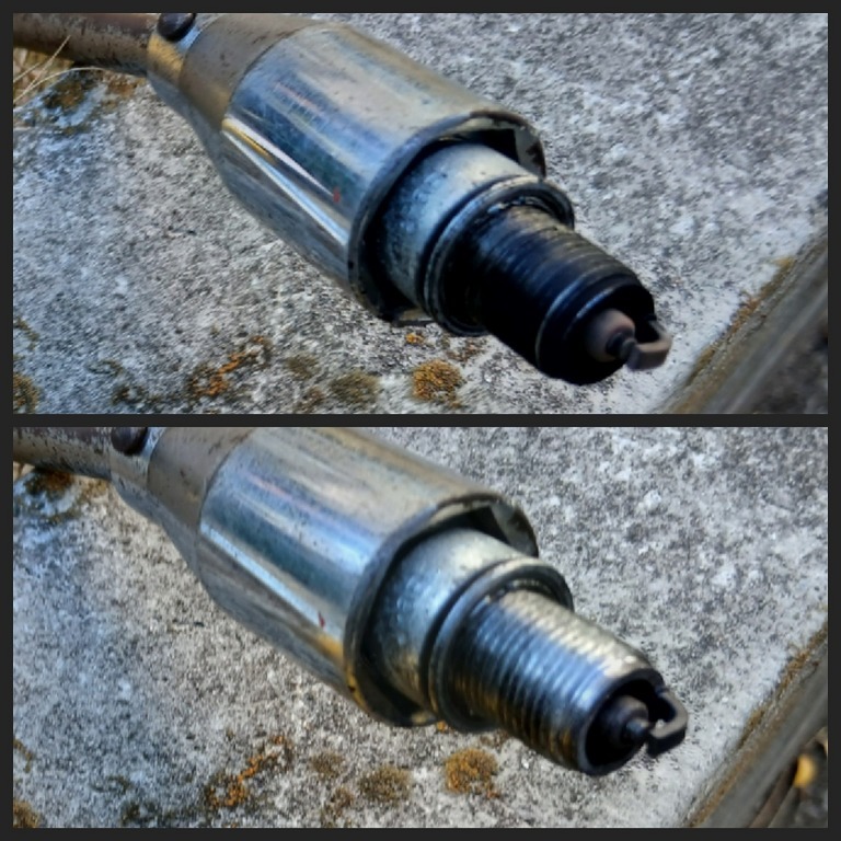 これまた久しぶりに、プラグを磨いてみたのだ。プラグを外してと「予想以上にキツネ色してるじゃん」とか思いつつの、ブラシでゴシゴシと汚れを取るのだ。