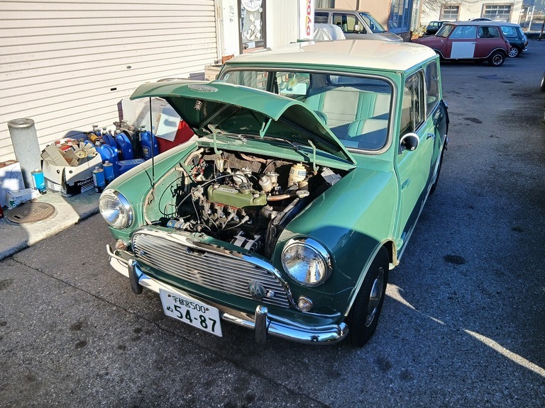 一つ質問したのは「冬場でも、一度始動すれば、その後の始動が楽になるのは何故?」って聞きましたら。ミニのエンジンブロックは「鉄だから」って話。鉄のブロックって、冷めにくいらしくて、冬場でも、一度温まったら、10数時間は温かいって!いや、目から鱗な話ですよ。