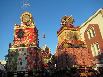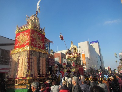 そこでやっと顔合わせ。UENさんは会場で絵手 紙の実戦練習。この絵手紙展の長所は絵手紙を 見て歩きながら鹿沼市内の名所を順次巡り、特 に屋台山車に関してはEと@で真近に鑑賞出来 る事。今回はEで石橋町の屋台山車と@で珍し い解体途中の2台の山車をガイド付きで詳しく 案内してもらえた。