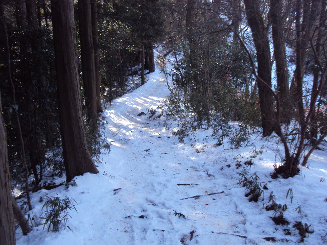 | 雪の晃石山 1月31日 | | 昼前に13:30に小山の兄貴が見えると連絡があり、のんびりと14:00から山に向かう。空の色が余りにも碧いので、水道山からの予定を変更して大曲から晃石山へ。 昨秋から毎日のように登ってた晃石だが、今月はこれでやっと4回目。朝から素晴らしい天気ながら、北の山々や西南の富士や浅間は見えず仕舞。そんな中筑波嶺だけはいつにもまして自棄にくっきりと浮き出ていた。 山道は一部歩きづらい所もあったが、概ね歩行の影響なし。でもベチャ雪腐れ雪が融け出し滑り易い所も何箇所か見受けられた。夕方気温が下がるとこれまた厄介になりそう。 富士山が雲に隠れて見えなかったが、副都心やスカイツリーが地平線の手前に肉眼でくっきりと観てとれた。 帰り道、随身門の近くの太くて青い孟宗竹が根元から折れ曲がって道をふさぐ恐れがあったので、逆折させて退けて置いた。 雪の重さでへし曲がった木や竹が目に付いた。 万歩計はぎりぎり10,102歩。 |