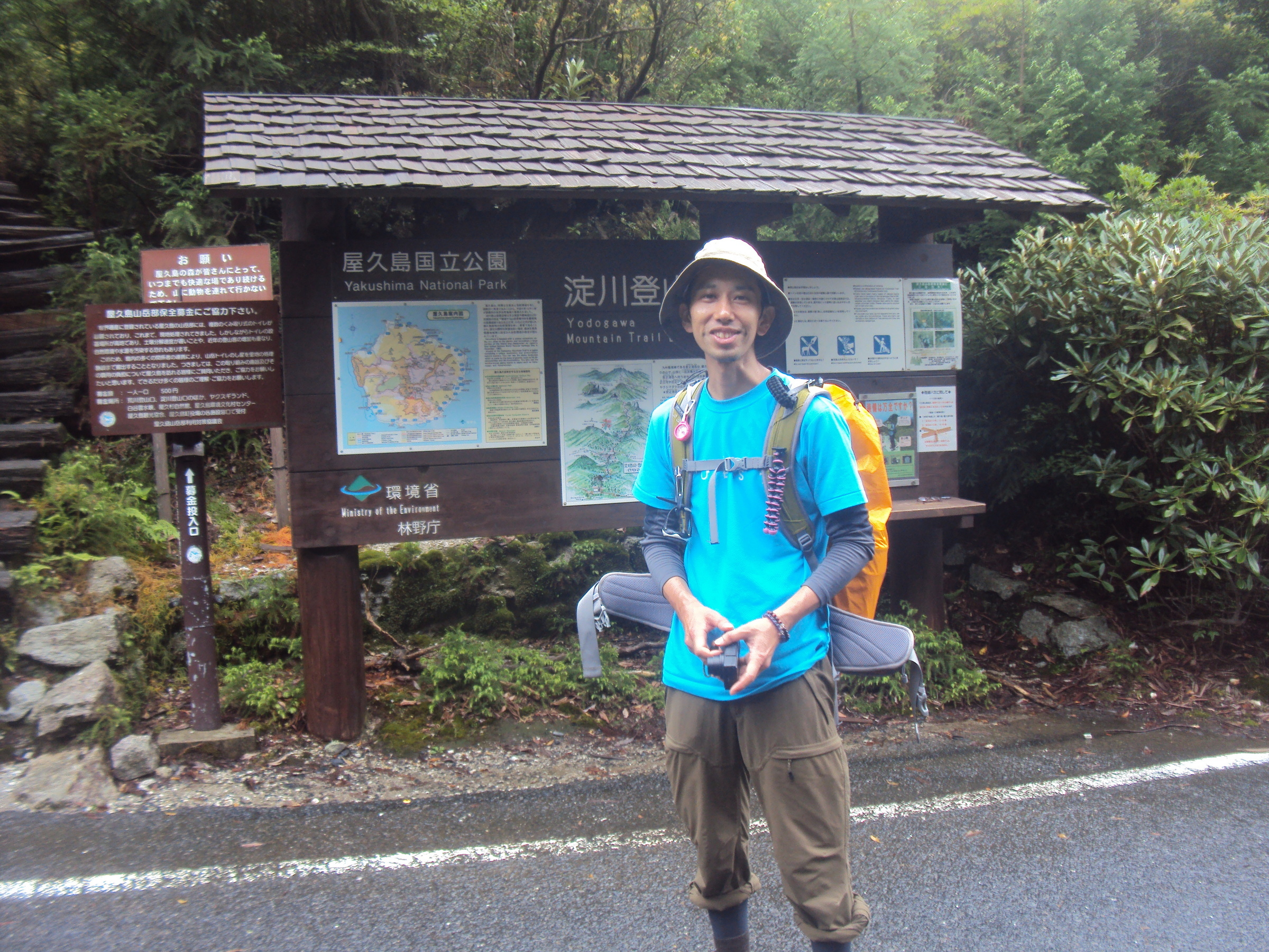 6月21日記 当初から18日は雨を予想していたので、今朝は3時に起きて登山の準備。関東と違って落ちらの夜明けは遅い。天気も悪い所為もあるが、関東では3時半には夜が白けてくるのに、1時間半も遅い5時前にならないと白けてこない。4時に未だ暗い宮之浦のバス停傍に昨日頼んでおいた朝食と昼食を受け取りに行く。合せて1,200円。安くて上手そう。ザックカバーと上下の雨具、折畳傘と宿のコウモリの完全装備で4:18分発の屋久杉自然館行きのバスに乗り込む。屋久島空港、安房港を通過し約1時間で940円の料金。屋久杉自然館で乗換え荒川登山バス片道券870円を2枚強制購入し、尾立峠の荒川分岐から荒川登山口まで約40分で到着。途中で夜は明けてきたが、雨の屋久島山中はどんよりとして薄暗かった。台風の影響は然程ないようだ。 6時に荒川登山口を出発。トロッコ道を5.5km歩く。枕木を踏んで歩くのだがこれが意外と厄介。枕木の幅が不定期でおまけにこの雨でその間に沢水が溜まり、枕木全部が沈んでいる処さえあった。途中にはレール幅80cm、中の渡し板40cmで幾つもの鉄橋があり、とても真下を見ては歩けない程スリリング。約50分で小学校跡まで到着。トロッコ道が終わって縄文杉までの登山道が5.5kmこれが結構大変だった。でもこの頃から雨もあがり、雨具をたたむ事が出来た。湿度の高い山中で下着は汗びっしょり。三代杉、翁杉、ウイルソン株、大王杉、夫婦杉、縄文杉と巨木の世界自然遺産の森は宮崎駿やアバターの映画の世界。晴れ間も見えて大自然の中の一人旅も結構いいものだ。 往復22kmの山旅は万歩計で39,314歩。疲れたが足の痛みは差ほどでもなく、民宿に帰って風呂に飛び込み、部屋で横になると2時間ぐらい寝入ってしまった。気付いて割烹居酒屋としに直行。生の中と小ビールを呷って、明日の好天を信じて今夜も早寝だ。