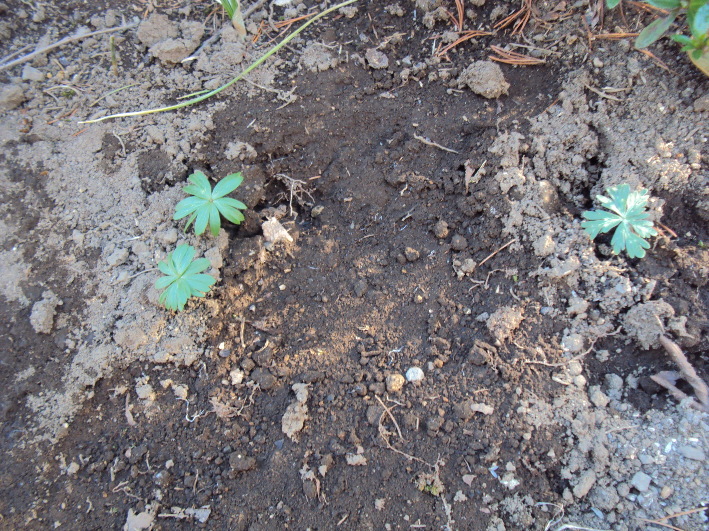 去年蒔いたセツブンソウの芽は出ていたのだ。イーさん、スーさん、wolfさん、noripiさん、このまま育てば、来年はセツブンソウをお裾分け出来そうです。