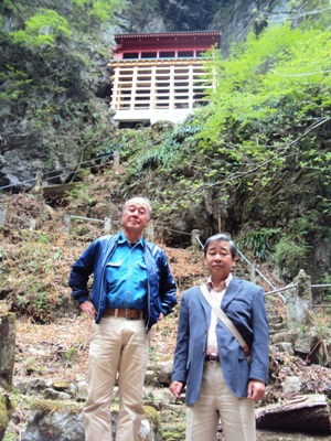 食後、出流山満願寺の奥の院に向かい、岩壁に張付く奥の院Cの、その又奥の鍾乳洞の十一面観音の後姿を拝んだ。近くの鍾乳洞も二つ三つ見せて、栃木の秘境林道をドライブした後、星野に向かう。 地層たんけん館など彼らが見たことの無い星野の自然を味わってもらい、長い一日の同級生のふれあいのたびの終焉に・・・ 二人には愉しんでもらえただろうか、感想も聞かないまま栃木の駅で夕方5時前に別れた。 |