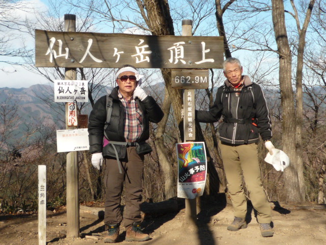 | ぶらり山旅、今年最後は赤雪山から仙人ヶ岳縦走7.5km。 12月になっても、5日に天城山、13日に尾出山、18.19日山小屋泊りで丹沢と、今年最後の、今年最後の登山と、その都度思いつつ登り続けてまいりましたが、強風の寒風が吹き抜ける今日もまたまた山に登ってしまいました。 今回の登山は松田湖を取り囲む、赤雪山と仙人ヶ岳縦走です。どちらも栃木百名山に入ってますが、昨年登頂済みの山です。でもお世話になっている相棒のイーさんもスーさんも未達の山なので今日は日頃の恩返しに同伴しました。 どうせなら昨年、F君とHさんが縦走した赤雪から仙人を辿ろうということになり、10時ジャストに赤雪山登山口駐車場からスタート。35分で赤雪山頂620.6mに到達@。 天気は晴天なれど風強く、風で体調不良気味な自分の体と、明日の検診で、循環器内科にも予約を入れた母の事が気がかりで、あまり気乗りしない登山になり、いつもの事ながらコースタイムよりも遅れたペースでした。 北の山々は雪雲に覆われて姿が見えませんでしたが、それでも男体山は薄っすらとかすんで見えました。強い寒風で関東平野は見通しが利き、スカイツリーが見えただけではなく、先日登った丹沢の山々や富士山も顔を見せてくれました。近くの赤城の山頂は雲に隠れていましたが、真っ白な浅間山や荒船山は良く見えました。それにしても稜線歩きは風が強く、尚且つとても冷たくて、堪えました。赤雪山から仙人ヶ岳の峰渡り縦走は幾つもの山を乗越えますが、何箇所かでかなり急な所があり、結構楽しめました。 12時50分に仙人ヶ岳662.9m山頂に到着A。でも風が冷たく強い為、直ぐに下山。この下山道が大変難儀でした。 途中に視界に飛び込んできた、13日に登ったばかりの尾出山の三角形が印象的Bでした。 2時過ぎに松田ダム湖の講演駐車場に到着し、降りてきた道を振り返りC難儀した下山道に納得しました。 イーさん曰く、「今年一番厳しい山だったよ」は本人の体調不良にもよるのか・・・な? 万歩計は20,546歩でした。 |