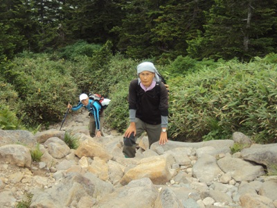 栃木を出る時は好天でしたが、福島飯坂ICから国道13号を米沢に向かう頃には曇天になっていました。 白布温泉の天元台ロープウェイ湯本駅(標高920m)に着いたのは9時10分、栃木を出てからから3時間強でした。 本日は足を痛めている飯島さんを気遣ってという名目で、楽チン登山を計画しました。 駐車場で着替える間もなく、9時20分発のロープウェイで天元台高原駅(標高1350m)迄行き、そこから3本のリフトを乗り継ぎ、しらかばリフトで標高1450m、しゃくなげリフトで1590m、つがもりリフトで1820mの北望台登りました。残念ながら中腹以降はガスが掛って遠方視界は全く期待できませんでした。 かもしか展望台、梵天岩、天狗岩を経て、西吾妻小屋から西吾妻山山頂に12時20分に登頂@。山頂からの展望はお天気も悪く何も望めませんでした。 今回の登山は標高差200m強の軽登山でしたが、途中の山道は岩道Aが多く、山頂付近は灌木高原湿地帯になっており幾つもの池塘のあるお花畑が続きました。 ワタスゲ、チングルマは盛りを過ぎていましたが、イワオトギリ、アキノキリンソウ、エゾオヤマリンドウ、モミジカラマツ、ゴゼンタチバナ、ハクサンシャクナゲ、アカモノ、シラタマノキ、クロマメノキなど多種多様の花々が見られました。オオシラビソは紫色の球果が際立ち、オオカメノキは赤い小さな実を付け、ナナカマドも未だ青い実ですが、いくらか紅葉した葉も見えました。 昼食中に雨が落ちてきて、ここ2年間の登山で、初めて雨具を着込みましたB。でも長くは降り続きませんでした。半袖半ズボンではやや寒い山旅でした。 帰りは西吾妻スカイラインで桧原湖から猪苗代ICに出て、磐越道で帰りました。往復480km。 万歩計は12,617歩でした。 |