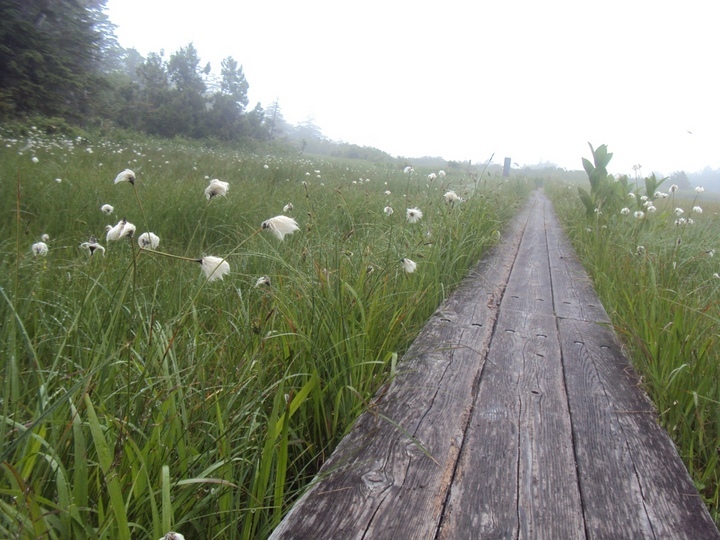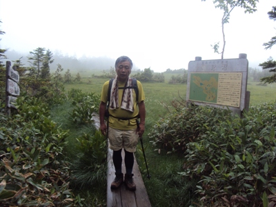 AM9:20。標高2000mの鬼怒沼湿原Bにやっと到着。 今日は本当に変わり易いお天気で、今にも降りそうな空模様ですが、それでもガスが少し取れてきました。