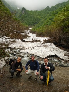 途中から道が開け、道標もきちんとついて、登り易くなりました。1時間もかからずに男山榛名山の分岐に到着し、そこから2分で9時4分に最初のピーク榛名山524mに到達@。 山頂に咲くドウダンツツジ属のアブラツツジ(油躑躅)Aが疲れを癒してくれました。 10分ほど休憩の後、分岐に戻り、次のピーク男山527mBに9時36分に到達。暑くなって半袖のアンダーシャツ姿ですが、お腹を凹ましての涙ぐましい写真のポーズお分かり頂けるでしょうか。残念ながらメタボッコリは未だちっとも改良されていません。 半ズボンの下にインナータイツを履いているので少し細目には・・・やっぱり・・・見えないですよね。 そこから約20分後、9時58分に本山561.6mに到着。 その時の相棒の写真Cですが、その相棒の誘惑の囁きが待っていました。 “も一つ行けるよね・・・” 今日は体調も良く、この時間なら、もう一山アタック出来そうなので、山頂で暖かいコーヒーを飲んだ後、急いで下山し11時15分に駐車場に戻りました。 それから国道119号と352号を横切り小代行川庵で蕎麦を食べて、火戸尻山(ほどしり)に向かいました。 林道が奥深くまで入れるので、午後からでも登山可能と思い、山に入りましたが、結構悪路で残念ながら途中で断念しました。 でも二日後に再チャレンジの予定です。 本日の万歩計は13,044歩でした。 |