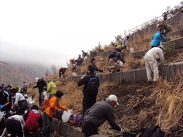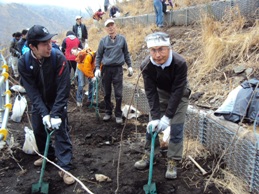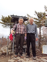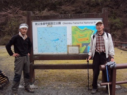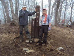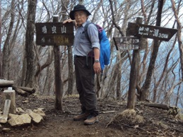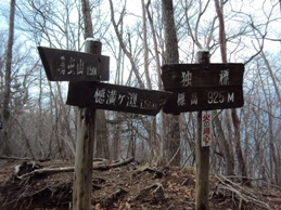寒い風が偲び込んで来る山頂で、熱いコーヒーで至福の時を味わい4時までに下山できるとだろうと、やや足取りも軽く下山したのは良かったのですが、話に夢中になり、尾根から脇尾根に下るコースを通り越してしまいました。登るときに有った鉄塔が別尾根に有る事に気が付いた時は既に遅し、約1時間のロスをしてしまいました。軽かった足取りが一遍に重たくなりました。でも何とか基の分岐まで辿り着き、そのまま黙々と下山を続け、4時47分に駐車場到着し標高差520mの羽賀場山登山を為し終えました。 2山合計の万歩計は27,176歩でした。 それとこの山で栃木百名山は60座になりました。