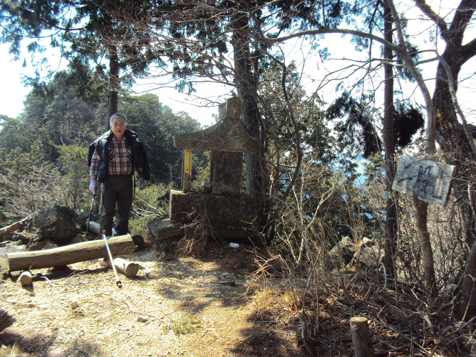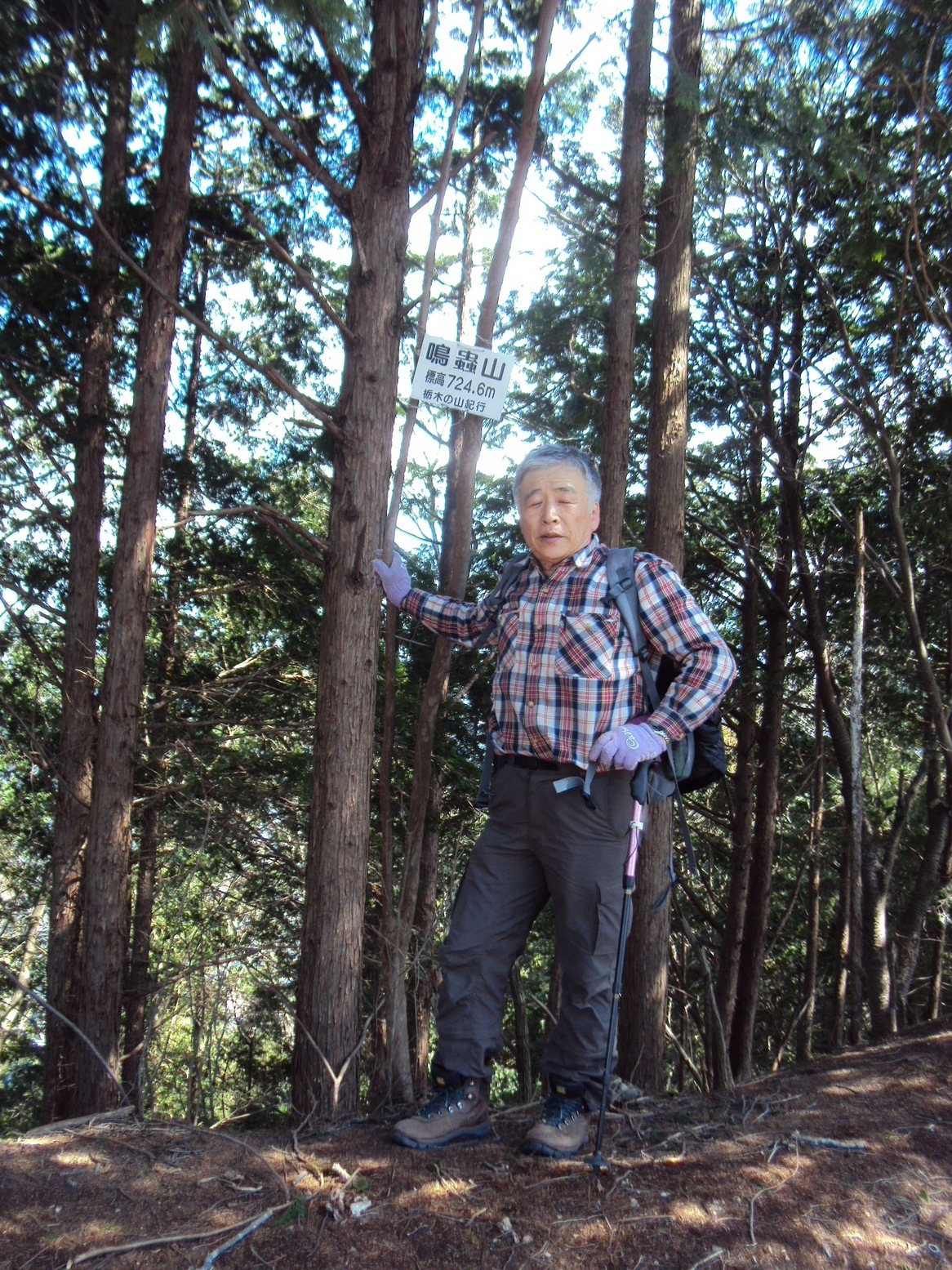 | 北峰の目の前に南峰は見えるのですが、この間の短い距離に思わぬスリルがありました。巻き道をすればそれは避けられますがロープの付いた結構な急斜面@がありました。 でも距離が短い為になんとかなるだろうと避ける気にはなりませんでした。 南峰の上りも木の根にしがみ付きながらの急登でした。 約10分で南峰に辿り着きました。 岩峰で栃木百名山の標識Aがあり、ここも東側の展望は抜群でした。 山頂には進入禁止の青色ロープが貼ってある処がありました。日蔭ツツジの保護の為でした。葉っぱに特徴があり関東以西の山地の崖などに生え、長楕円形で花は4,5月に咲くそうです。今の今まで二度と来ない山だと決めていたのに、花に時期にもう一度来てみたくなりました。 ここから引返そうかと思っていたのですが回遊コースの看板に心動かされ、遠望の効く晴れた日には富士山や八ヶ岳が見渡せる展望地へと南下し加園駐車場から下久我駐車場に回遊するコースにチャレンジしました。 この選択は悲喜こもごもになりました。非は回遊コースの駐車場と駐車場間が想像以上に高低差が大きくて結局北峰直下まで登り返す事になってしまい時間がかかったことです。12時前に下山して次に鳴蟲山724mか羽賀場山774mに登る予定でしたが、1時間半以上オーバーしてしまい連荘を諦めました。 喜は登山道にイワウチワの自生地があり、この時期にしっかりと真近で開花したイワウチワBを見られたことです。ここも保護の為登山道が進入禁止になっていましたが、逆コースを通ったので通過後に気付きました。 1時半に駐車場について、足の疲れは殆どありませんでしたが、次の山を諦めた代わりに、遅お昼は日光(今市)市小代の行川庵まで足を伸ばしました。 食後は日光道の無料高速区間の土沢〜今市間を利用して杉並木公園に廻りました。 進行方向の日光方面は雪空で杉並木公園では雪が舞ってきました。 帰りに鹿沼の町の駅で日本一奇麗なトイレを利用し、ドリップコーヒーで締め括りました。 本日の万歩計は14,700歩。