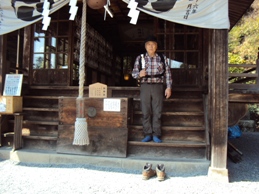 このまま帰るのも勿体ないので茨城県の最高峰八溝山1022mにも寄ってみました。 山頂直下まで車で行けるので、2山の登山を終えた私はサンダル履きで車を運転し山頂に向かいました。途中殆ど雪はなかったのですが1000m近く高度を伸ばした頃、道端に雪が目立ち、一部路面も覆われてきました。何とか山頂駐車場に到着できましたが、福島県側の道路は雪で閉鎖されていました。 山頂記念写真は20cmの雪を踏み分けてサンダルで登ったものです。靴下は勿論びしょぬれです。 下りでオイルランプの点滅が始まりました。従来のカローラだとそれから100q位走れるのでハイブリッド車も大丈夫だろうと安心して走っていると、途中で4,5回警告音が鳴りおました。山を降りて一般道に出た途端、ガソリンエンコしてエンジン音が止まってしまいました。何回かスイッチを押してみましたが反応が有りません。 近くに2軒家があったのですが、どちらも人の気配がありませんでした。ディーラーに連絡しても直ぐには連絡が取れず埒があきません。でも5分位して車に戻りす位置に触れるとエンジンが懸かりました。一体どうなっているのでしょう??? 取敢えず雲願寺に向かうのを断念して、来た道を戻り途中のスタンドで10Lだけ給油しました。 家に着いたのはpm6:20でした。 万歩計は14,458歩。