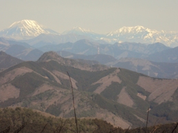 | 地図に載っていない千部ヶ岳572m 4月2日 | | 31日に須藤君が遊びに来た時に決めていた本日の出流の山歩きですが、実は国土地理院の5万分の1の地図には655.8mの最高地点しか乗っておらず、千部ヶ岳に至っては名前も何も乗っていません。 でもふれあいの森から満願寺奥の院を巡りふれあいの森まで1周する(観音入林道を含む)林道は過去に4,5回ドライブしたことは有りました。大半は擦れ違い出来ない程の道幅ですが但し全区間完全舗装された立派な林道です。里山ドライブにはもってこいの快適な擦れ違う車は殆どないワンマン林道です。 遊歩道としての登山道は別に整備されていて、ふれあいの森から展望台510mを経由して千部ヶ岳572m山頂に至り満願寺奥の院から本堂までの道標と案内図は掲示されております。往復2時間半の道乗りです。 一般にはこの遊歩道を利用した登山の報告がブログに載っていましたが、今回はもっとショートカットしたコースを考えて、出流れ山荘前の林道を満願寺奥の院を左手に見る地点まで車で登り、100m先の道幅が広くなった処に車を一旦停めました。その脇には不動尊霊窟石燈と書かれた石碑があり、地下に向かって伸びている古い鍾乳洞がありました。標高は350m以上ある処だと思います。遊歩道(登山道)の案内板も有りましたが、もっと上に別な取っ付き道があるのではないかと、林道を更に車で上りました。 予想に反して取っ付道は見つかりませんでした。でも構わずに林道の最高地点の峠迄登ってしまいました。標高は600m近いと思われます。そこには、前に通った時から注目していたのですが、展望台0.9qと書かれた道標@がありました。今日はゆっくり登山の予定で時間もまだ9時半だったので、ここからリュックを持たずに展望台を目指して歩く事にしました。5分も歩かない内に左手、北斜面の視界が開けてきました。栃木県を代表する雪を頂いた山岳パノラマAの展開です。写真には男体と女峰の日光連山しか掲載出来ませんが、白根や錫ヶ岳、皇海や袈裟丸、高原山や那須連邦が白銀を輝かせていました。 歩いて13分で標札が無ければ見逃してしまいそうな千部ヶ岳山頂572mBに辿り着きました(実際帰り道で山頂通過を気付きませんでした)。私の登山歴で初めての体験ですが出発時点から下って山頂を極めました。不思議な気分でした。 そこから9分で展望台510mCに着きました。展望台といっても何もありません。岩の台地Cで北と東から南にかけた展望がやや開けているだけです。そこには千部ヶ岳護摩壇の旧跡の掲示版が掲げてあり、勝道上人がこの山頂から遥かに男体山を望んで、日光開山の意を固めた伝えられ、それを祈願して護摩修業をされ、千部の経巻を唱えた処から千部ヶ岳とよばれると記してありました。 ゆったり往復1時間の、実に呆気ない登頂でした。 本日の予定はこれにて終了!!・・・ではありません。 栃木市の最高地点の到達と確認の任務?が残っていました。 オタノシミ・・・ニシテクダサイ??? |