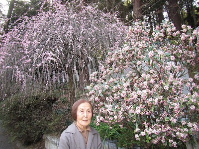 おかめさくら 枝垂れ梅と沈丁花 枝垂れさくら