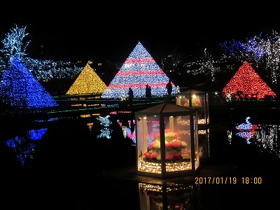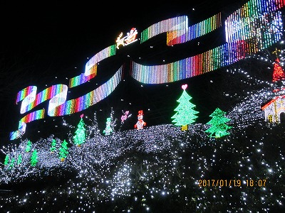 お昼は当初 肉のふきあげ を予定していたが、佐野ラーメンもいいね という事で 田沼の おぐらや まで足を延ばした。PM1時、平日でも 駐車場は満杯、野外の順番待ちも数組あった。昼食後赤見の日本名水百 選の泉を巡り、葛生から峠越えで栃木市の奥座敷・柏倉大使館へ。その 後先月25日までの展覧が5月まで伸びたと、観光協会から情報を貰った ので栃木市役所の4階の歌麿の「雪」「月」「花」の絵を見て貰う。 その後、宿のかな半旅館にチェックインし、足利フラワーパークのイル ミネーションを愉しむことになる。到着が早過ぎたが、そのお陰沈みゆ く夕日とのコラボも垣間見られ、夕闇が深まる程に、噂に違わず素晴ら しい光のファンタジーの世界に没頭出来た。 6時20分に光の殿堂を離れ、田沼から高速を利用し 肉のふきあげ へ。 7時前に入店し、栃木の食を楽しんでもらい、8時には宿に返す。