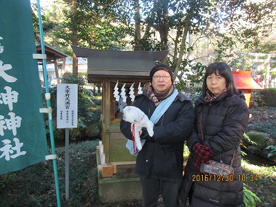 10時に再度、弟の家族と4人で太平山に向かう。長男達もすぐ後から向かったようだ。 今朝と違い遊覧道路はだいぶ混んでいた。栃木カントリーのコースグリーンの処から渋滞 は始まっていた。12時10分前にやっと大曲駐車場に着き、太平山神社で月参りの白い幣束 を頂き、太平山神社本殿で祝詞をあげてもらい、お札を頂く。