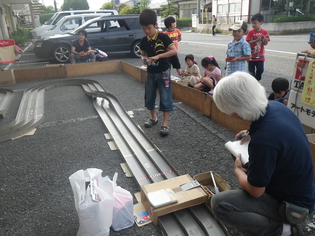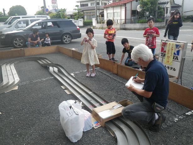 1回目を走らせた後 30分後に2回目と言った感じで行われました。でも 三回中 二回コースアウトすると失格になってしまうので、1回目でコースアウトした人は、セッティングのやり直しと、なります。だから親が大変です(*^_^*)