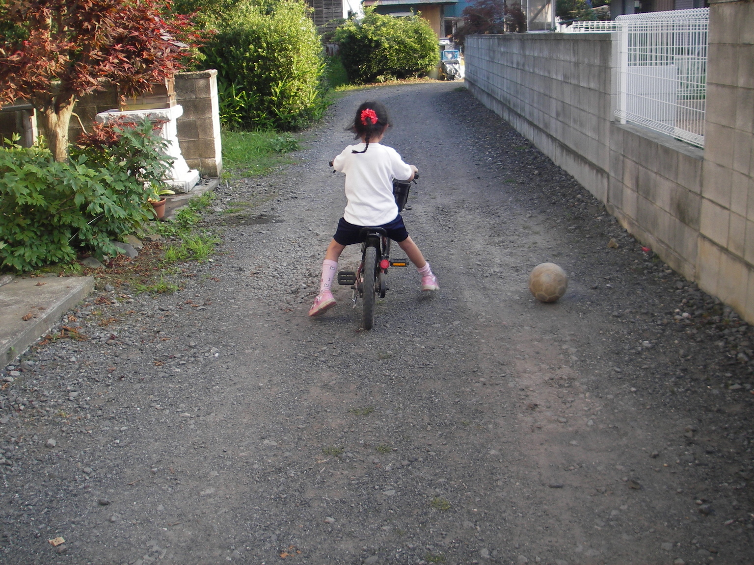 娘は、一輪車は乗れるのに 自転車は乗れません(*^_^*)