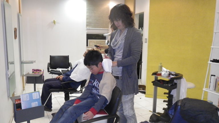 をしながら楽しそうに切ってもらいました(^^♪