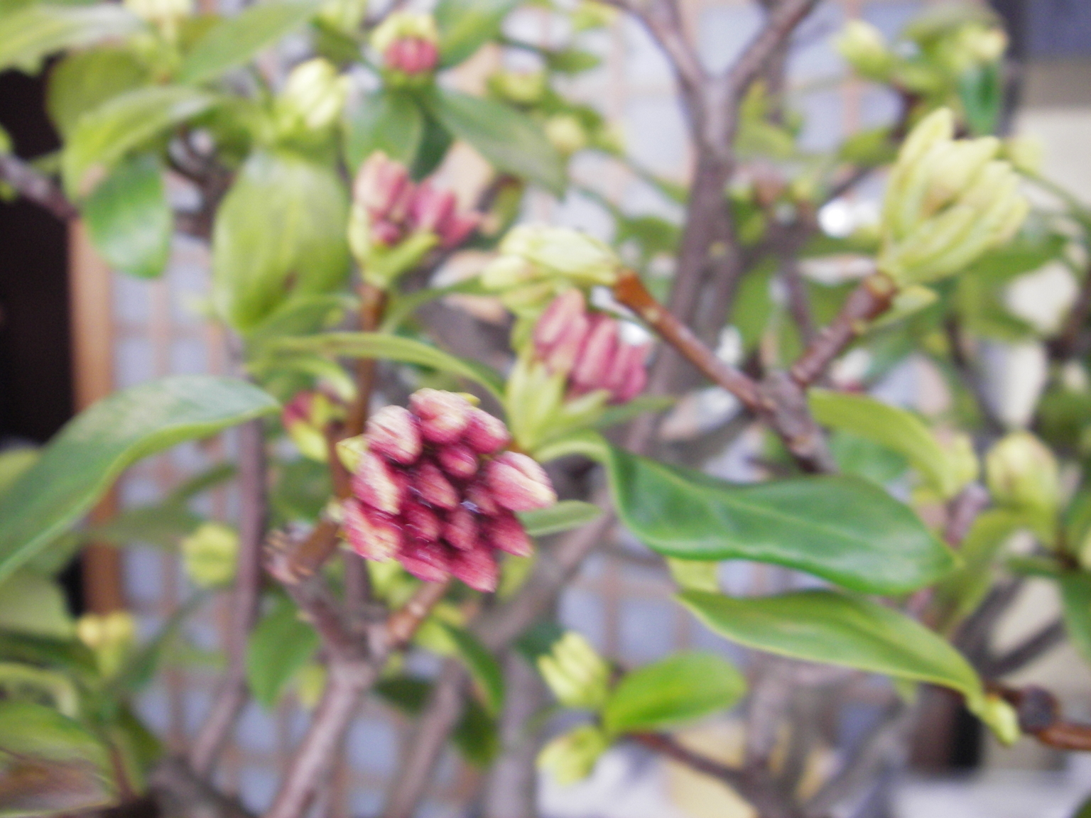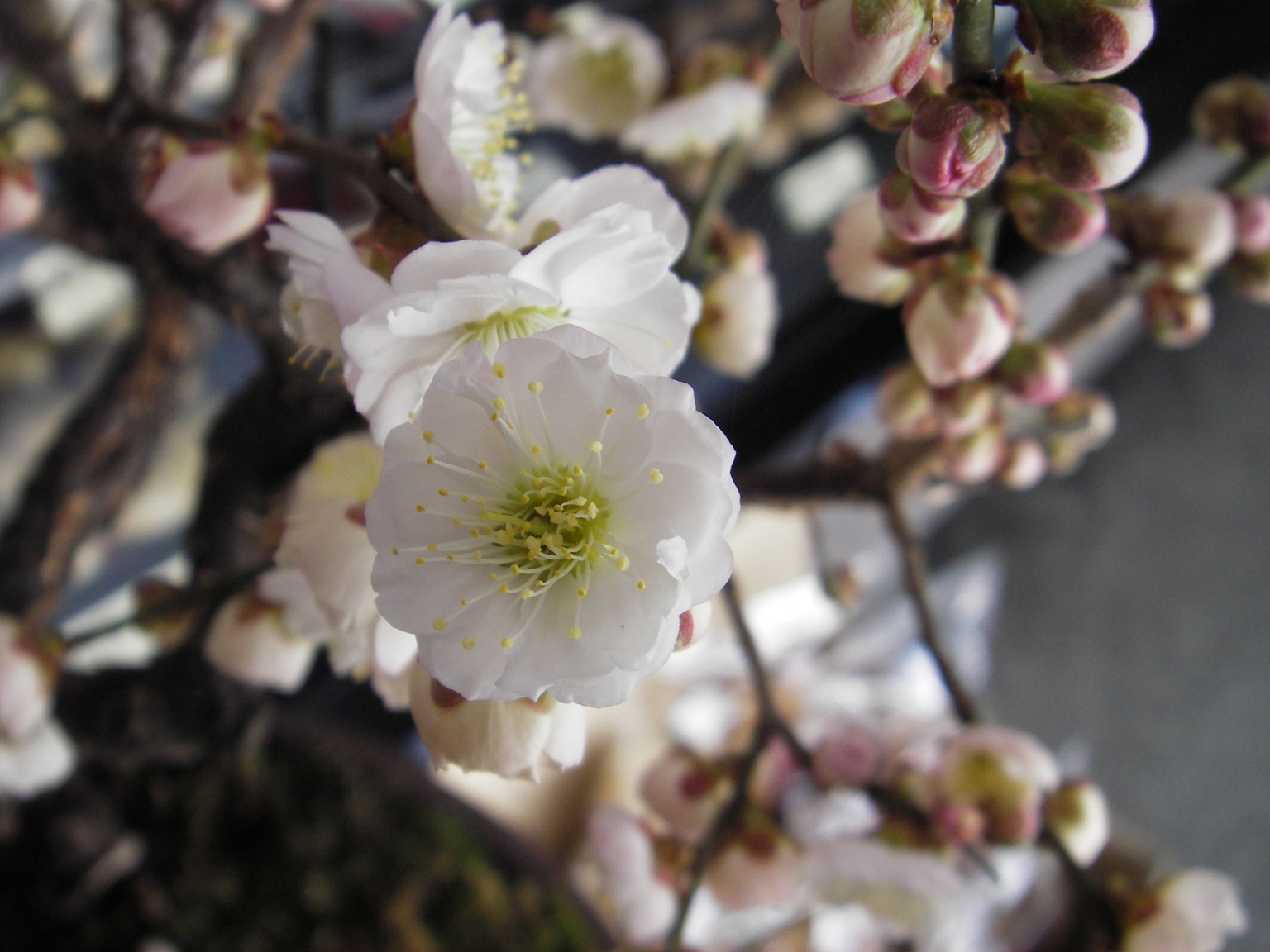 盆栽の梅が満開ですよ。他にも色々なお花がありますので、見に来て下さいね(^^♪