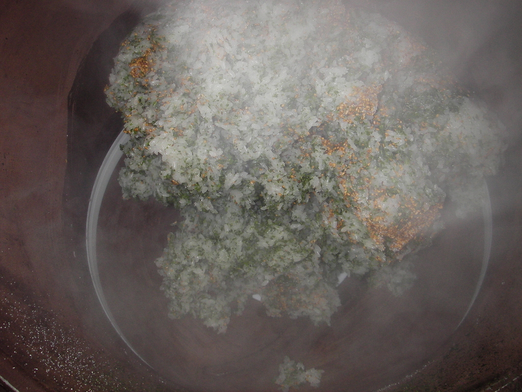 当店のかき餅には 青のり・ごま・塩を入れています。重曹は入れていません。