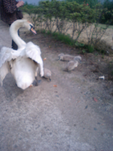 嬉しくなって足取りも軽く歩いていると何か白い物体と何人かの人だかり・・・。近ずくとそれはなんと白鳥(^o^)それも、産まれて何日かの雛が三羽。クローバーの恩恵は白鳥だったのか!