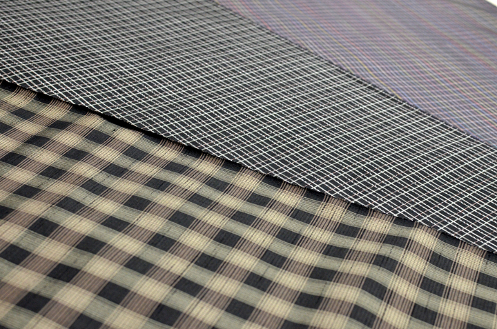 本場大島紬 (枡屋儀兵衛)の格子柄。大島紬では珍しいポップな柄です。