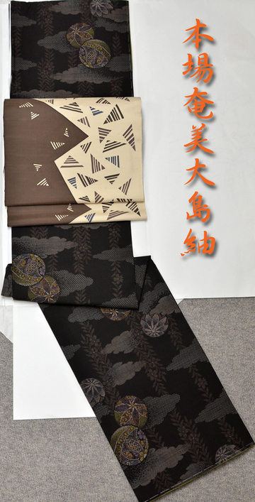 気軽に楽しめる、大島紬で、帯も、半巾帯から、名古屋帯と色々合せられます。
