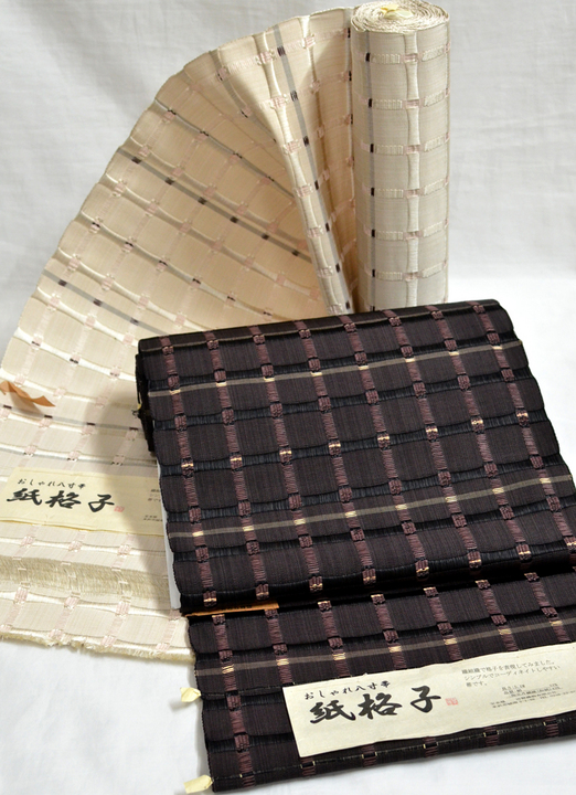 今回、気に入ったのは、紙布使いの(和紙43%)の、格子柄の八寸名古屋帯。