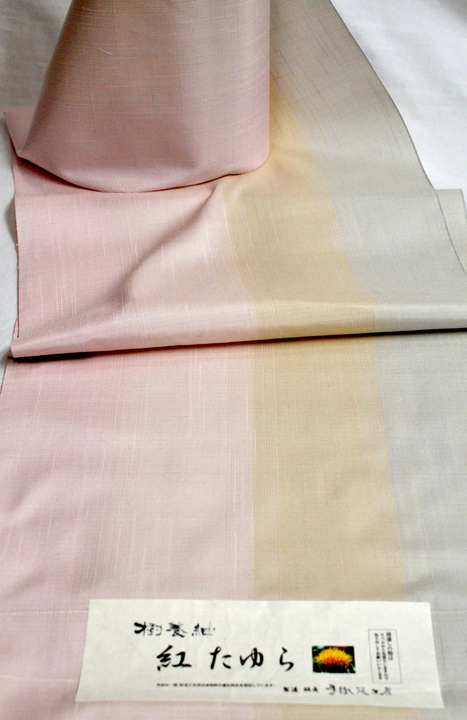 次に、紅花使いの、やさしい縦ぼかしの紬・・・。