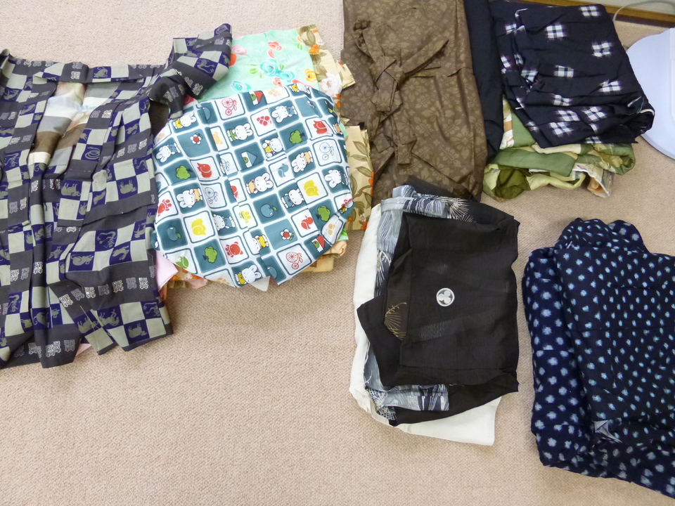 一点一点、状態を確認してアドバイスさせて頂きます。綺麗に丸洗いして着用出来るもの、帯にリホームするもの、残念ながら処分するもの、手芸の材料として使えそうなもの、等々