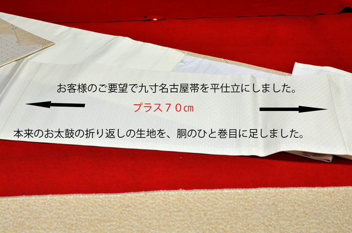 身長に合わせて、長襦袢と着物の腰上げを、手の長さに合わせて肩上げを致します。