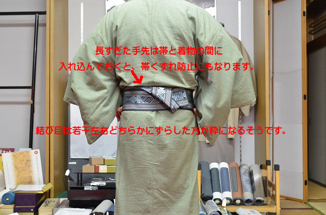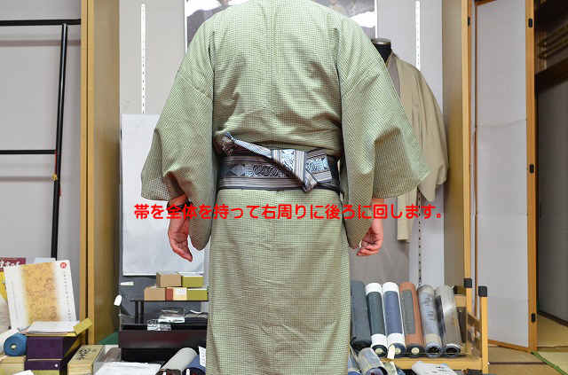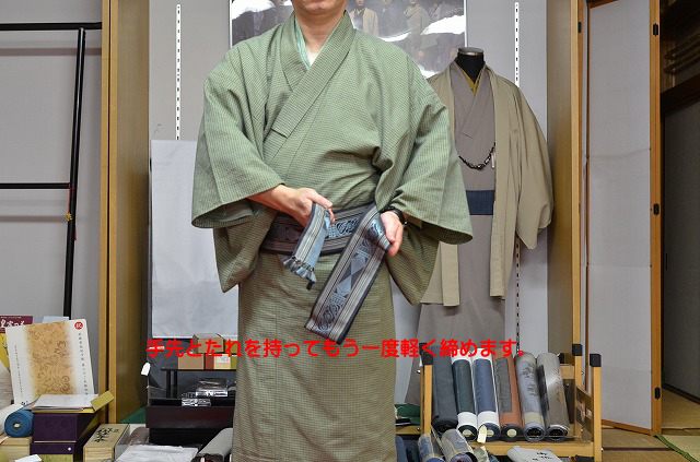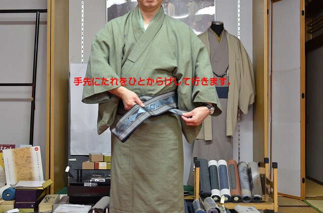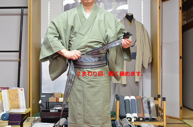 男の着物、帯編。今日は、一般的に良く締められる【貝の口・男結びとも言います】の締め方をアップしました。