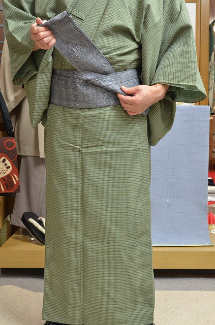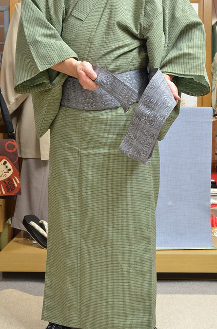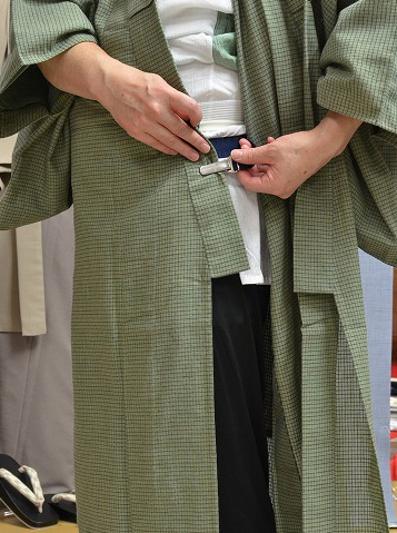 片ばさみは、武士が刀を差すことによって、いっそう帯がしまる締め方です。