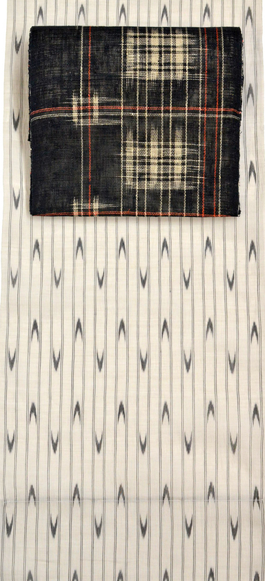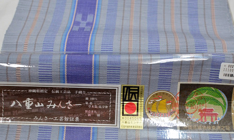 綿でできた幅の狭い織物→「綿狭」(みんさー)、「ミンサー」となったといわれている、独特の絣模様が特徴的です。八重山ミンサーの詳細はこちら→