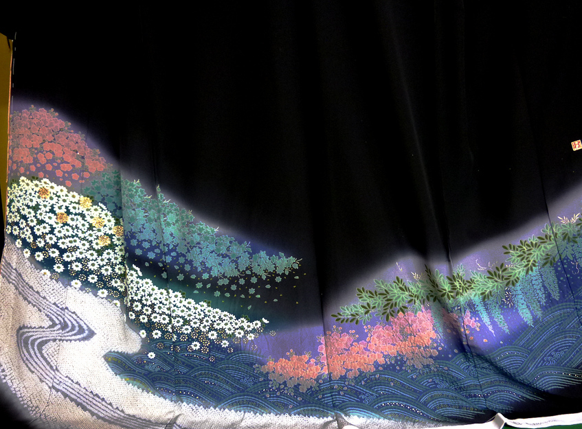 ブライダルデザイナーの桂由美さんブランドの、絞り加工を施した個性的で、豪華な柄ゆきの留袖です。