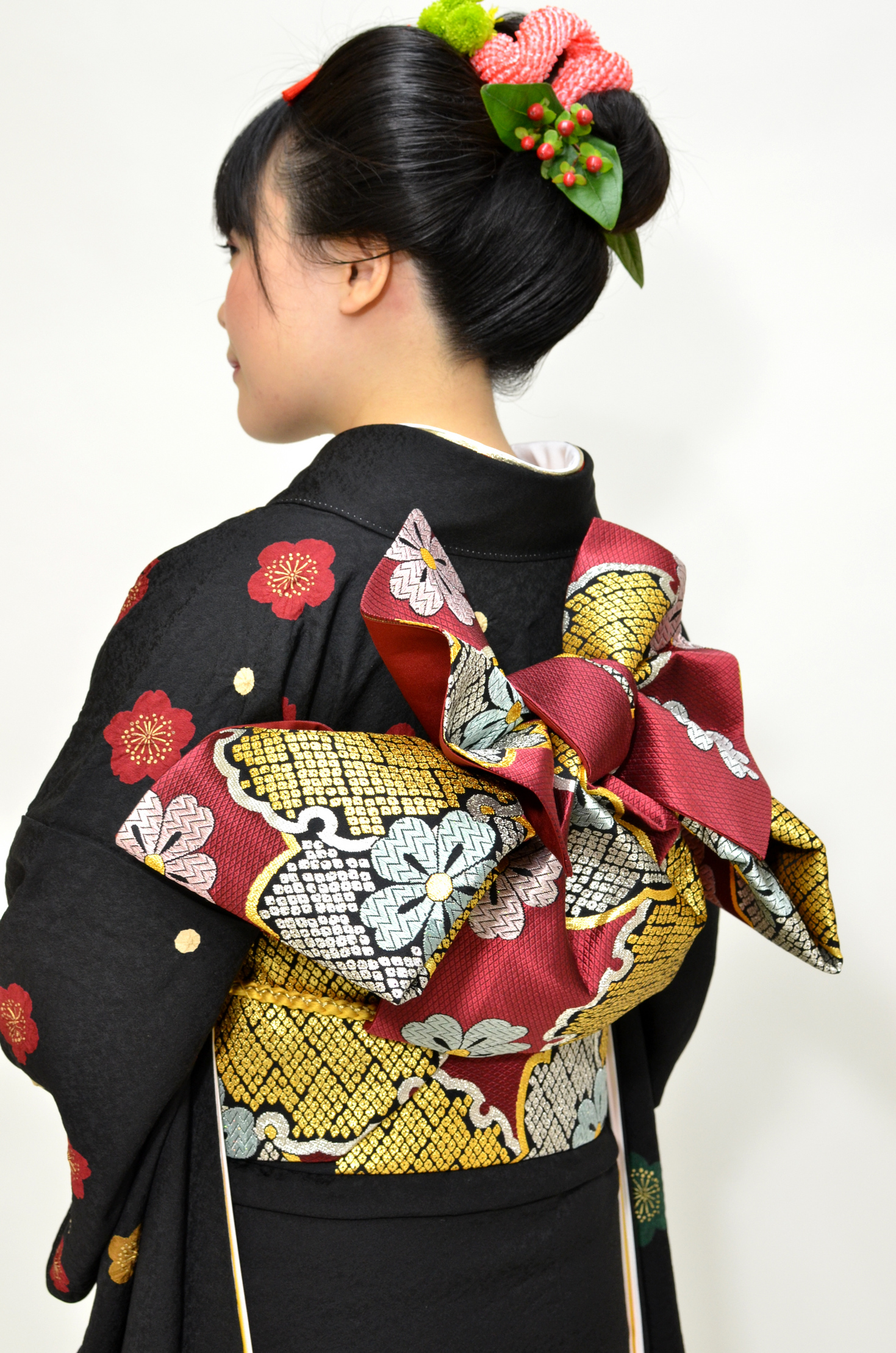 本日も成人式の写真前撮りがあって、振袖の着付けをさせて頂きました。とっても明るいお嬢様で、振袖姿がよりいっそう引き立っていました。