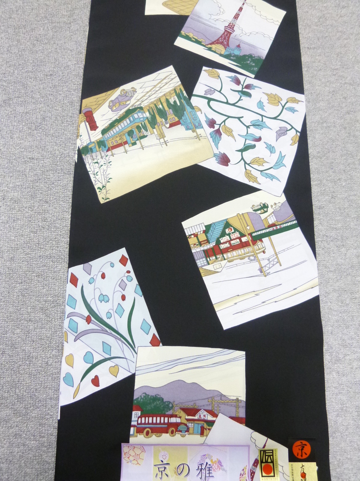 黒地は、昭和のレトロな乗り物などをモチーフに描かれた羽織の裏地にも合いそうな長襦袢。