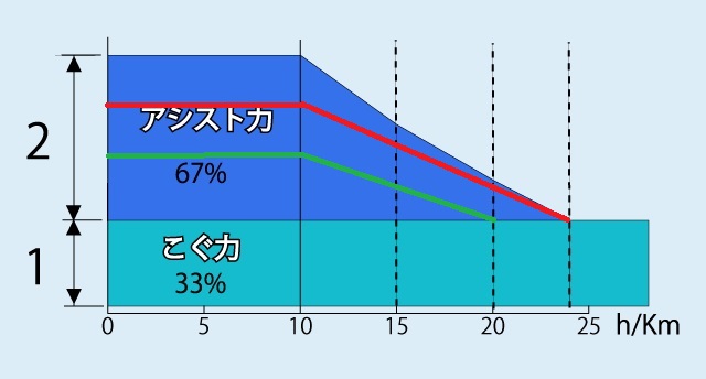 <最後に>電動アシスト自転車のアシスト比は、下図のように日本国内では定められています。(これ以上アシストしてしまうと、自転車ではなく原付扱いになってしまいます)