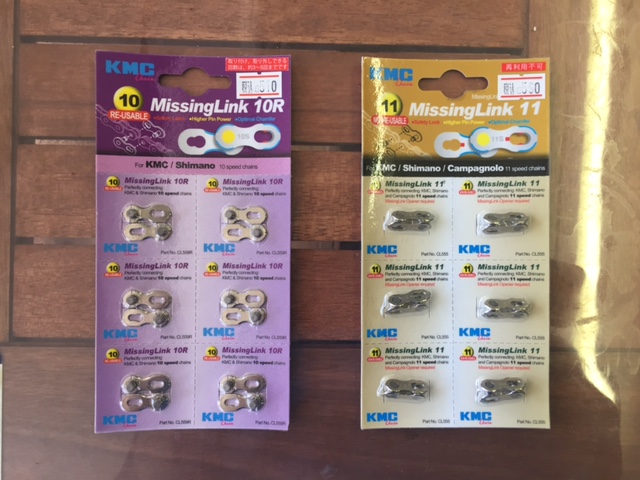 なんか文章書いていて、あらぬ方向になってしまいましたが、マジックレバーのアイデアと機能が素晴らしいのは変わりません!!お手元に1セット置いてみてはいかがでしょうか?(笑)ちなみに当店では、ミッシングリンクはKMCのもの(10速、11速用)を在庫してましたので、シマノのやつは様子見にしておきましょう...
