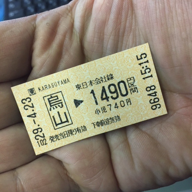 なので輪行!!しかし、烏山駅から岩舟駅までの片道料金が1490円って!同じ県内なのに...