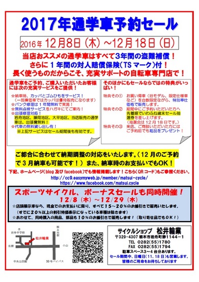 したがいまして、BSさんも含め昨年までの扱いを反省?し、今年はガンガン通学車としておススメしていきますよ!